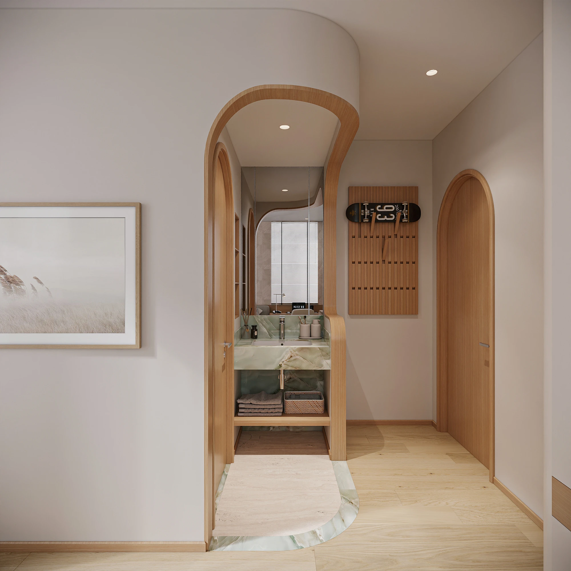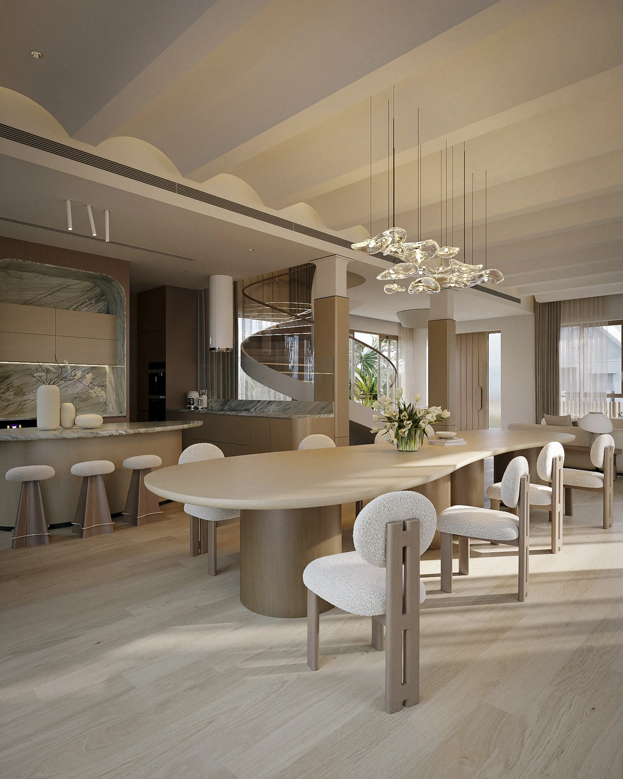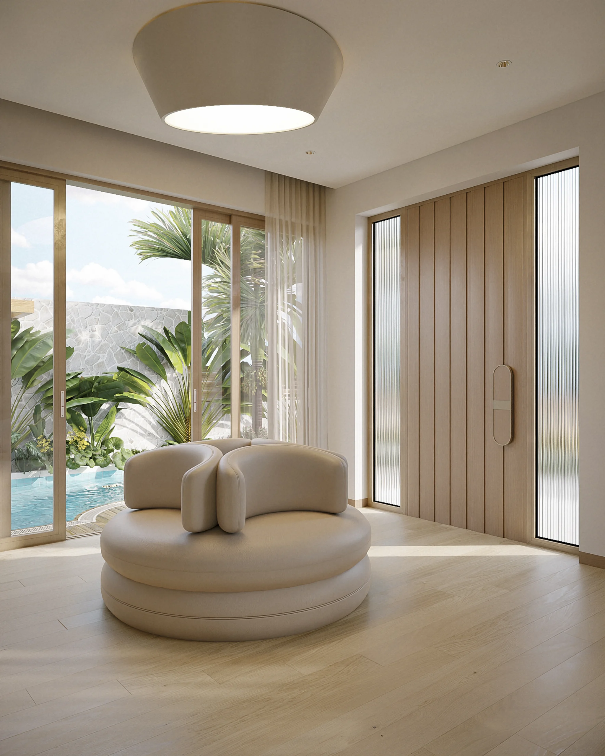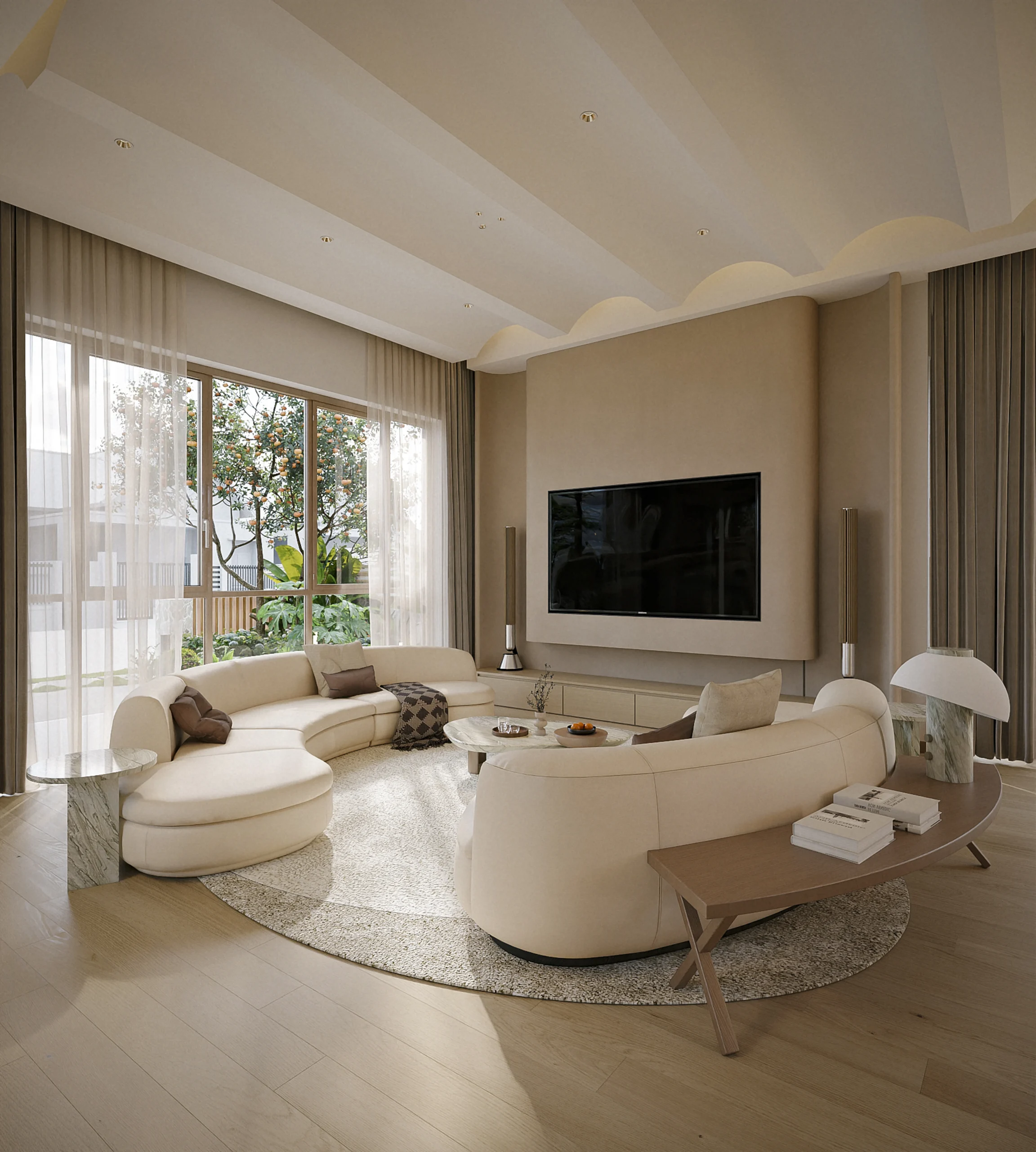 Tại dự án lần này, Grandhomes cùng gia chủ đi tìm điểm chạm giữa sự tối giản và hơi thở hữu cơ (Organic). Không gian không chỉ là nơi để ở, mà là một thực thể sống động, nơi những đường cong mềm mại dẫn dắt thị giác và ánh sáng tự nhiên trở thành chất liệu chủ đạo.