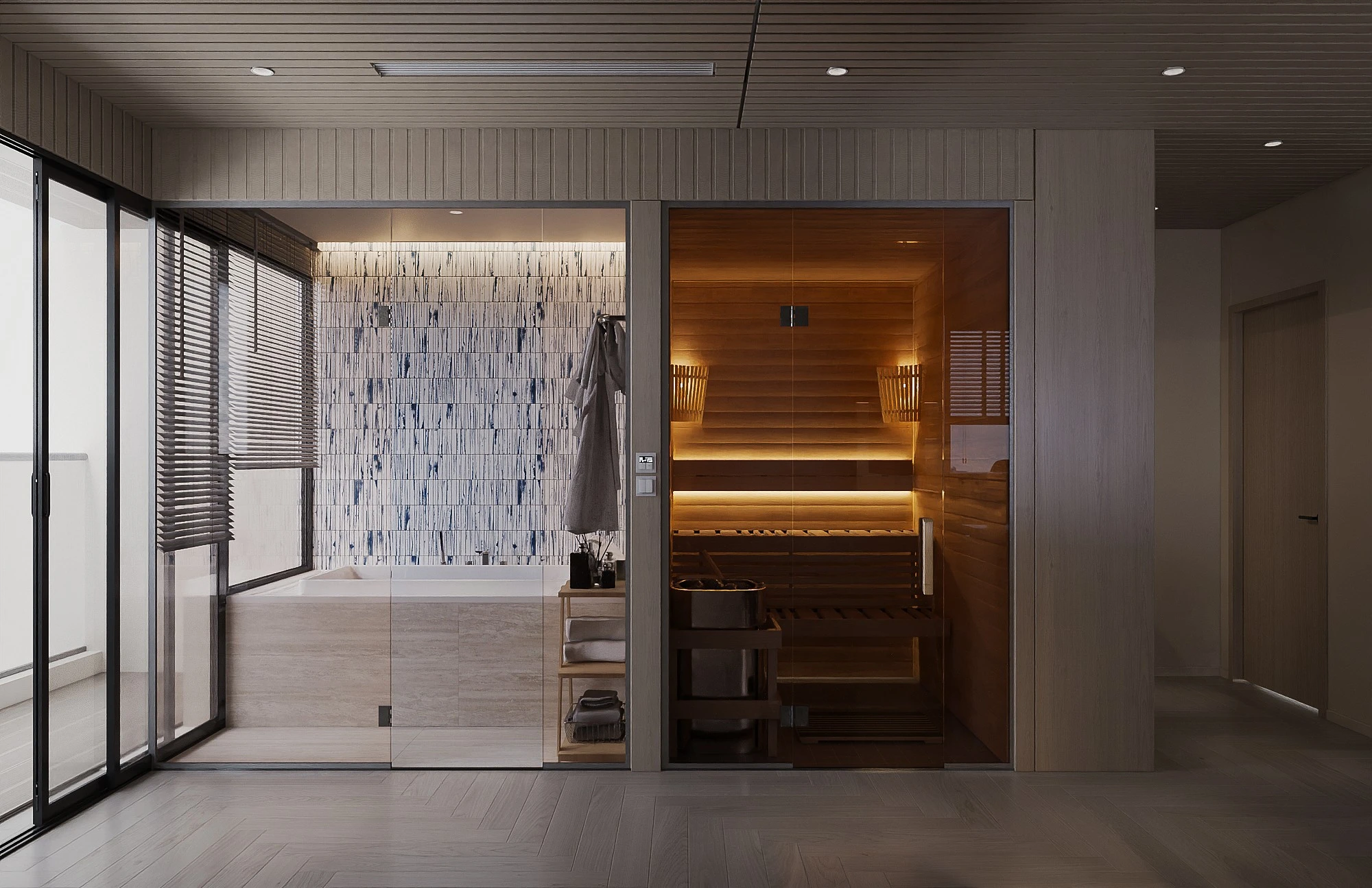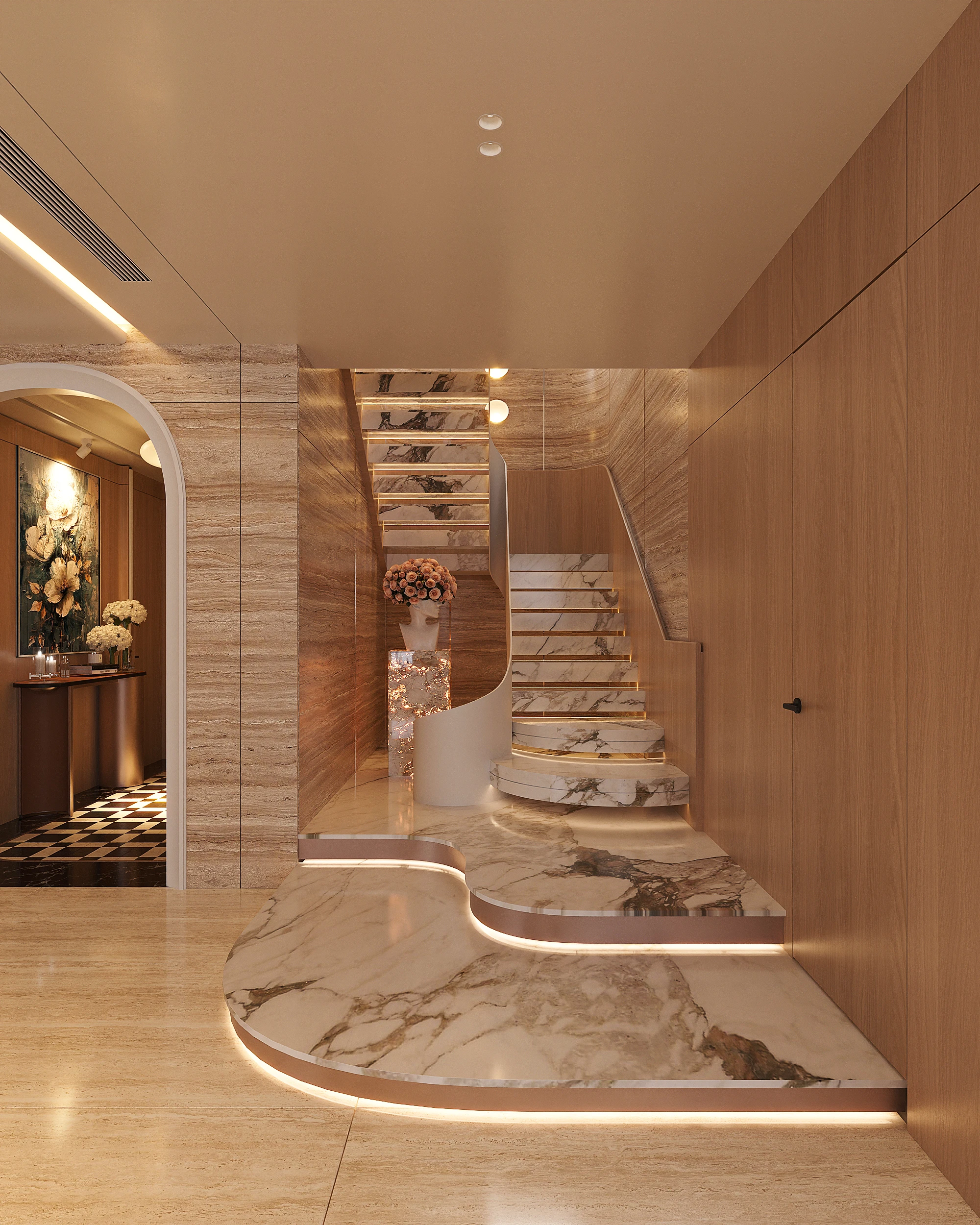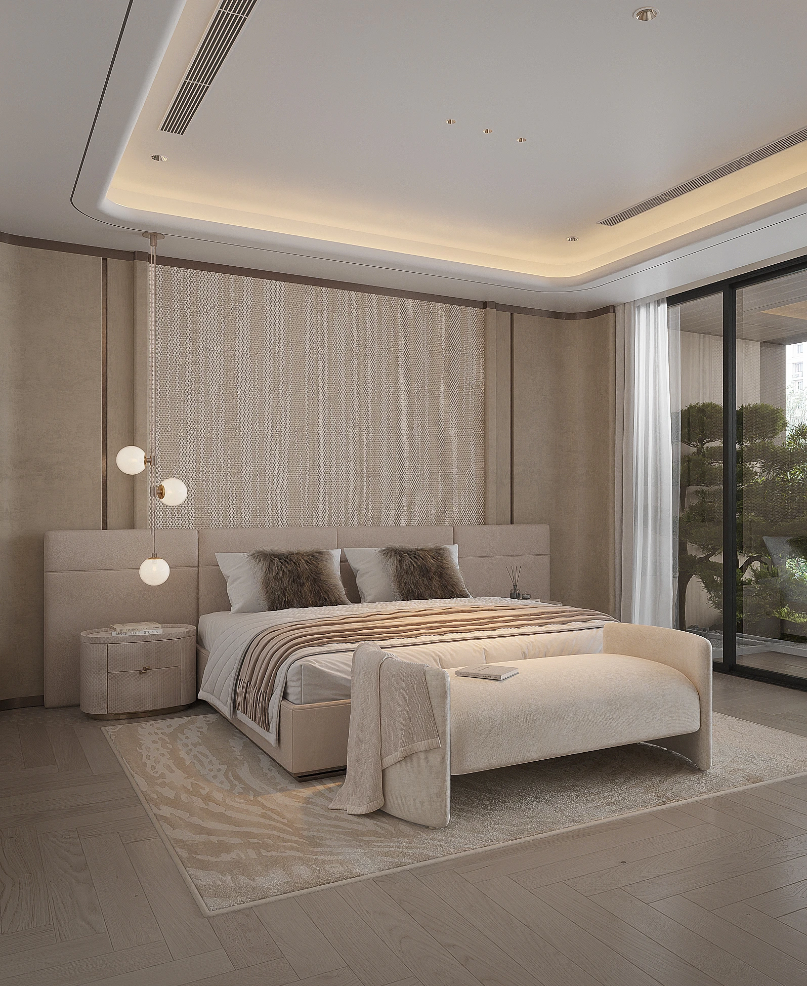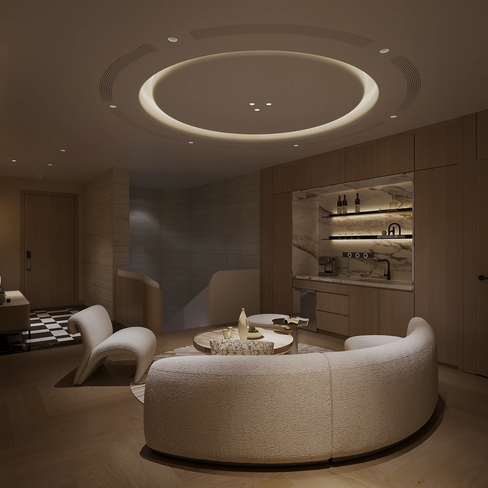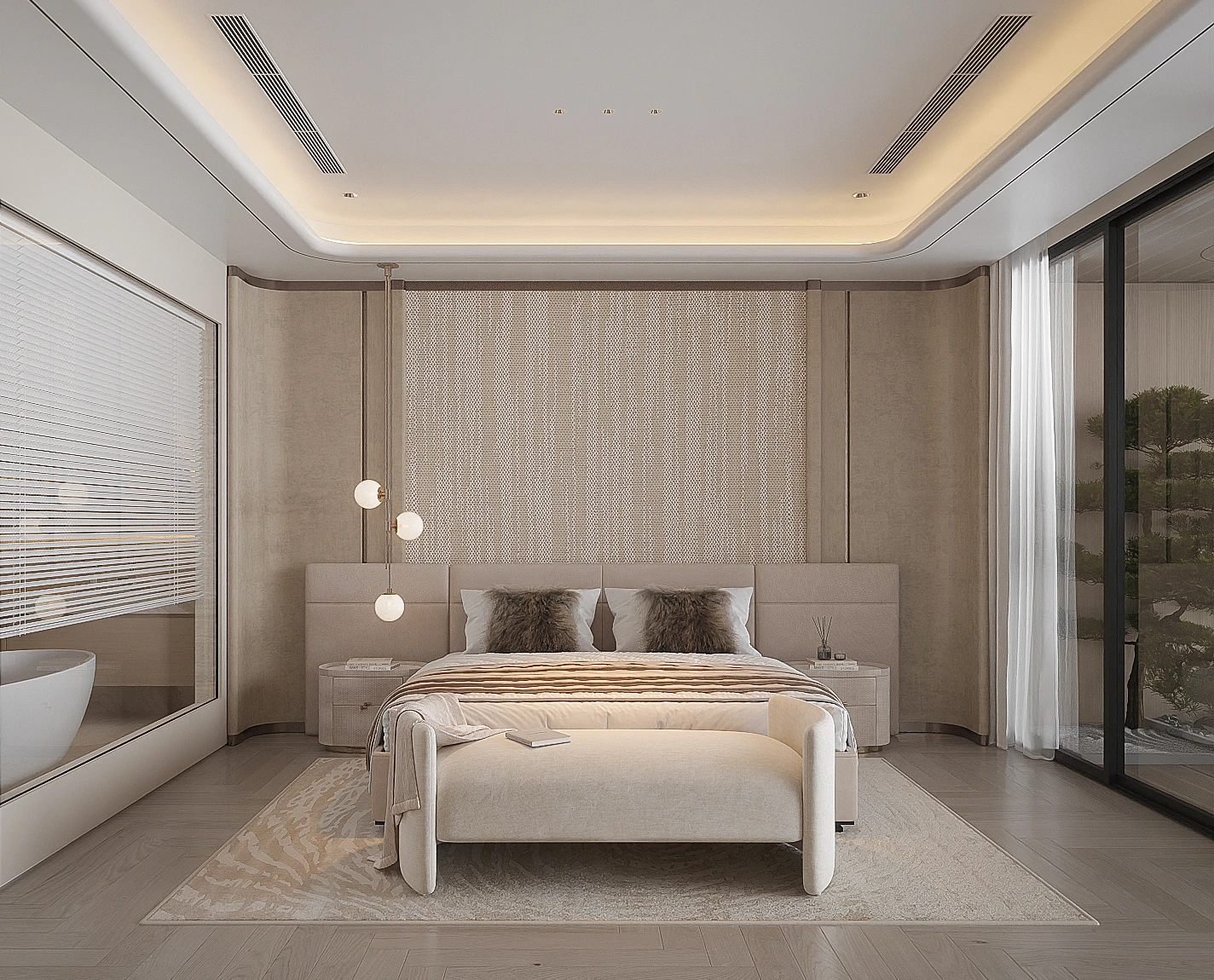 Cách phân bổ tỷ lệ giữa khối đặc và khoảng trống, sự lặp lại của vật liệu tự nhiên trong từng phân đoạn không gian, và cách ánh sáng xuyên qua mặt phẳng kính để tạo ra gradient chiếu sáng thay đổi theo giờ trong ngày được vận dụng cùng tinh thần Modern Organic – kiến tạo một không gian khoáng đạt, nuôi dưỡng cảm xúc.