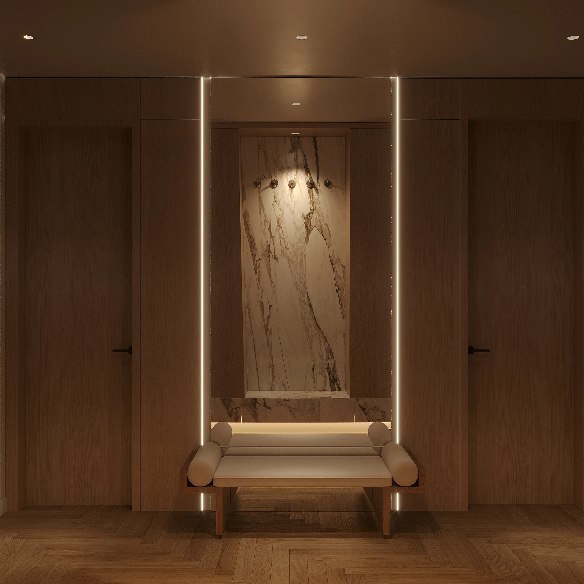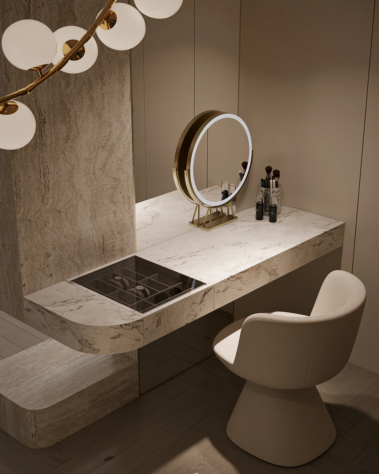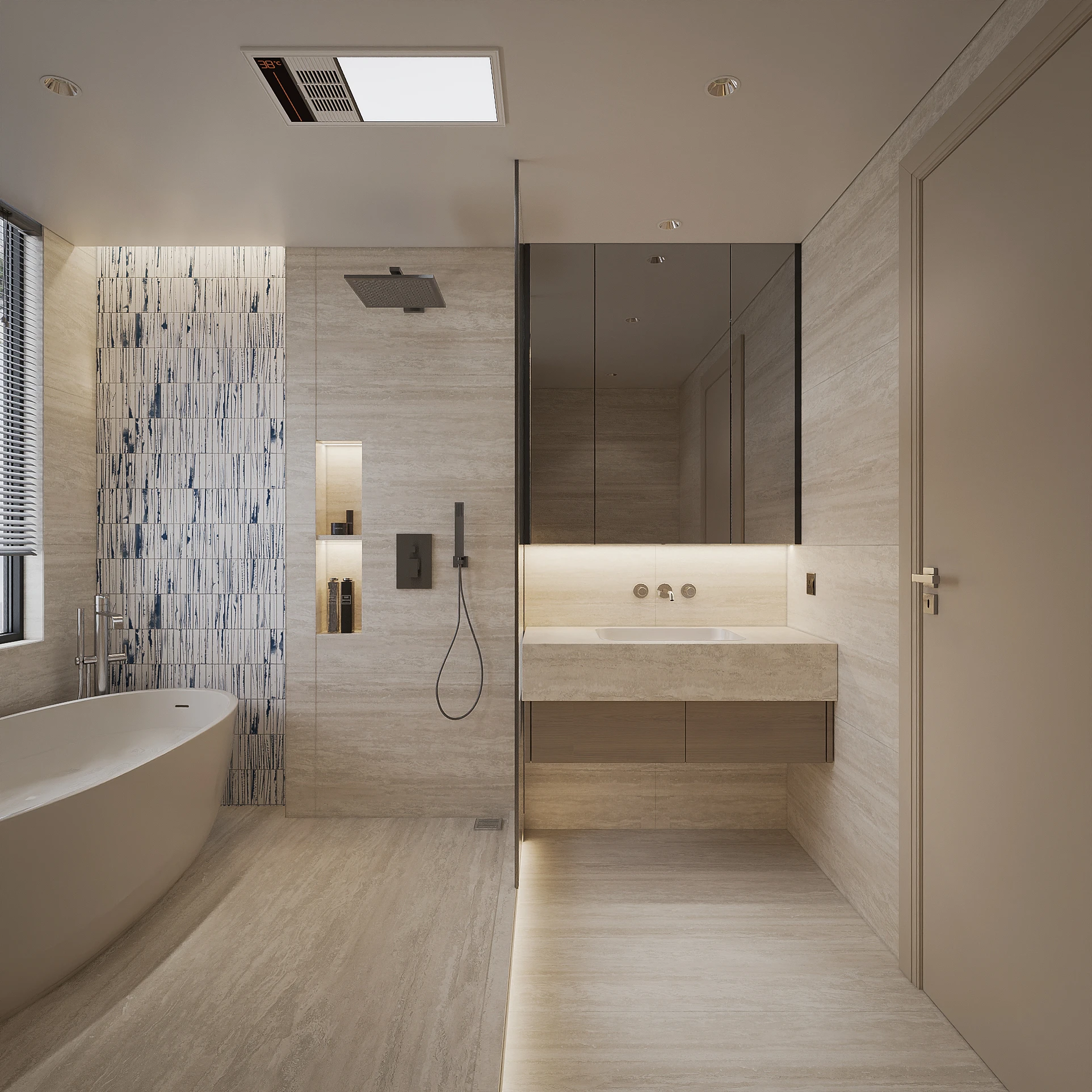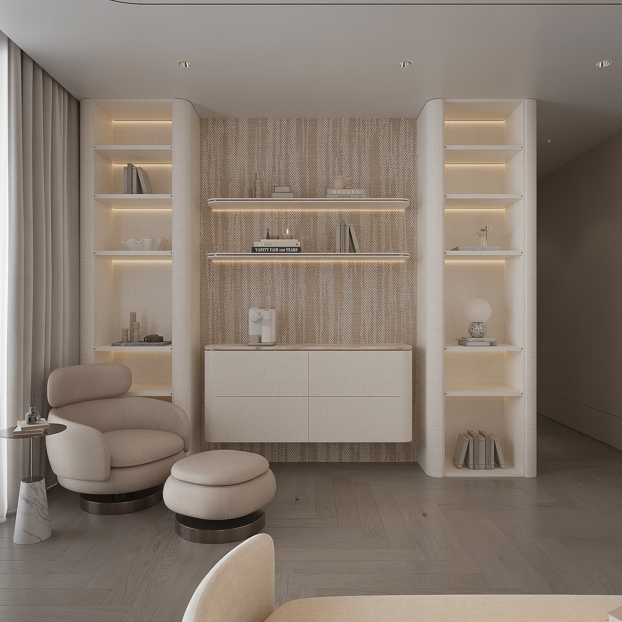 Cách phân bổ tỷ lệ giữa khối đặc và khoảng trống, sự lặp lại của vật liệu tự nhiên trong từng phân đoạn không gian, và cách ánh sáng xuyên qua mặt phẳng kính để tạo ra gradient chiếu sáng thay đổi theo giờ trong ngày được vận dụng cùng tinh thần Modern Organic – kiến tạo một không gian khoáng đạt, nuôi dưỡng cảm xúc.
